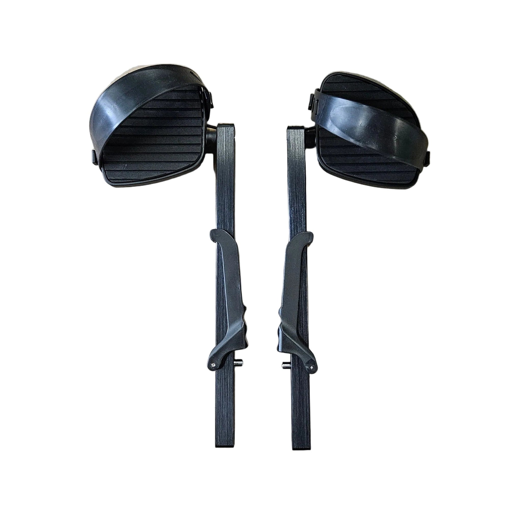 2 pedal posts including top pieces, 2 pedals with pads and pedal straps, 2 plastic housing pedal pieces, 2 springs and pedal pins, fully assembled.
